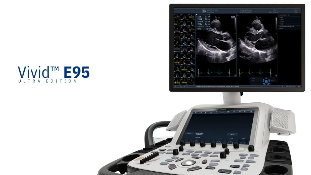 Vivid E95 este un ecograf 4D premium produs de GE Healthcare, conceput pentru imagistica cardiovasculară de înaltă performanță. Vivid E 95 utilizează instrumente complexe de procesare și analiză bazate pe inteligența artificială Edison pentru a oferi o calitate excepțională a imaginii, fluxuri de lucru optimizate și analize detaliate, fiind ideal pentru diagnosticul complex al afecțiunilor cardiace.