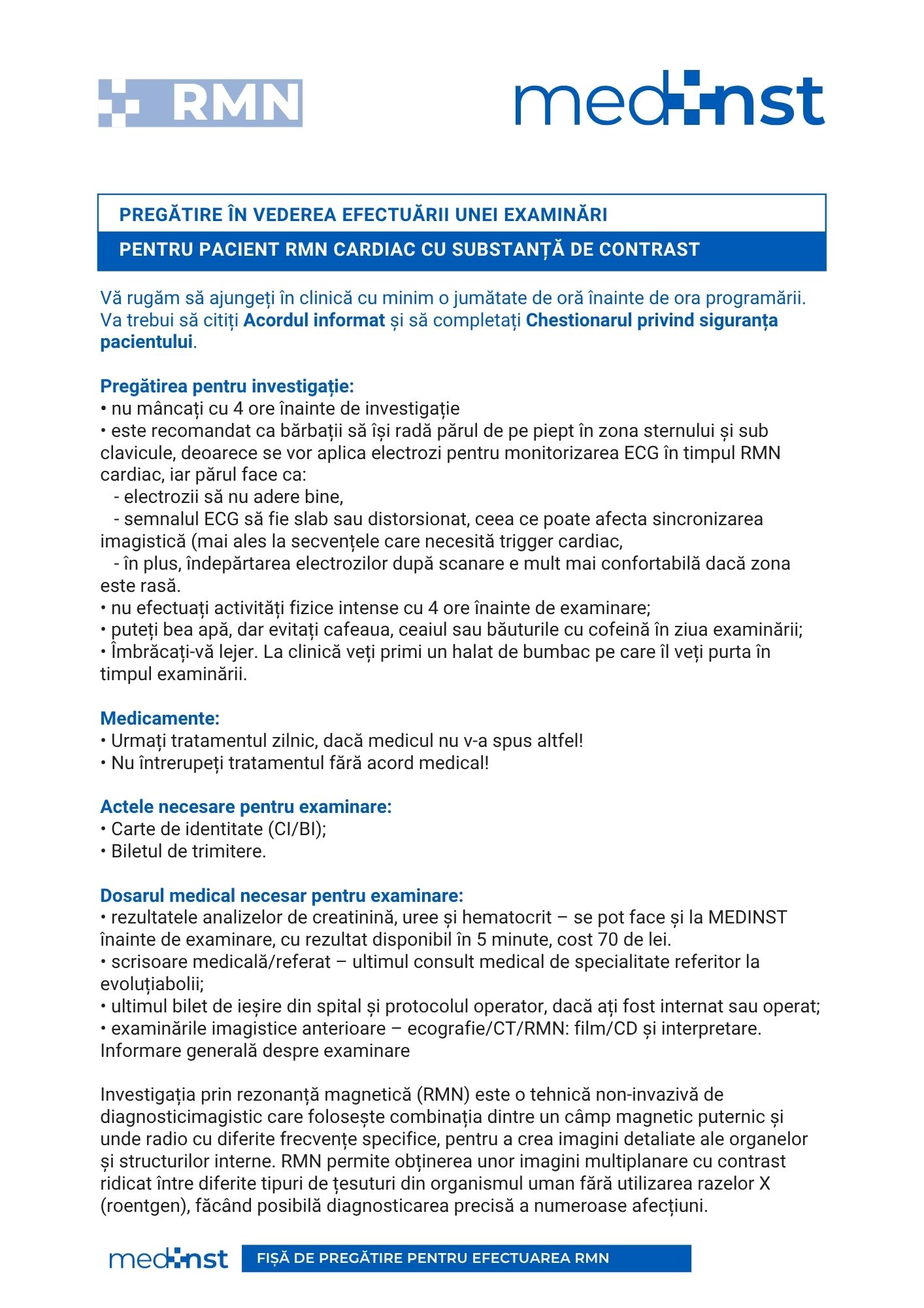 Pentru pacienții programați la RMN sau CT de cord sunt disponibile Ghiduri de pregătire dedicate acestor proceduri.
